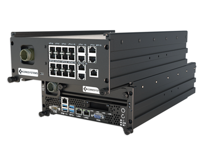 The Rugged ATMOS server is an independent stackable node computer with the latest Intel® Xeon® scalable CPU. This server can act as a standalone unit or be connected to multiple enclaves via the stackable ATMOS Chassis Rail System. Each ATMOS node is equipped with onboard UPS battery backup for uninterrupted C2 on-the-move operations.